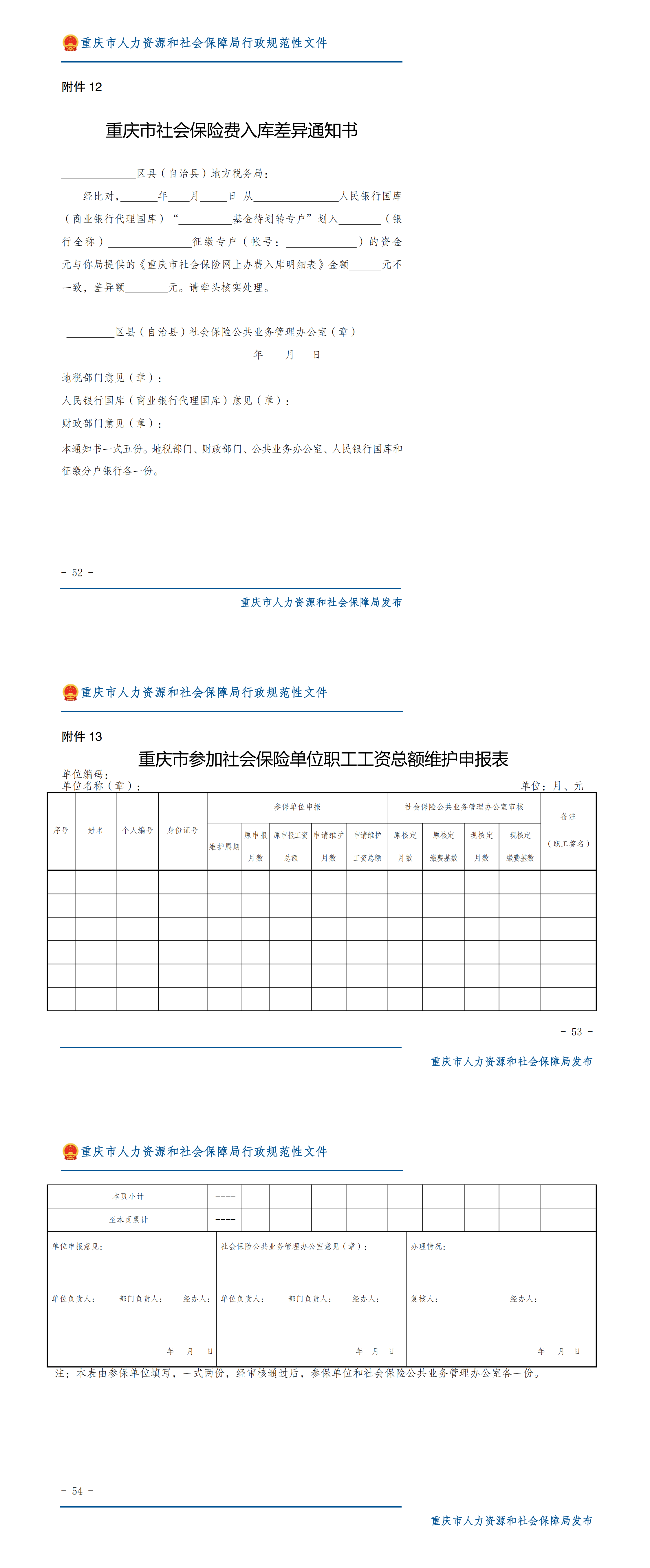关于印发《重庆市社会保险统一征缴管理工作规范》的通知