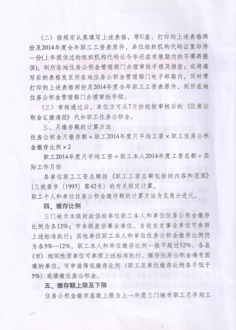关于调整2015年度住房公积金缴存基数的通知(三门峡)
