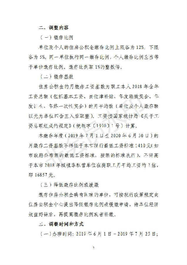 关于调整2019-2020年度住房公积金缴存基数和比例的通知