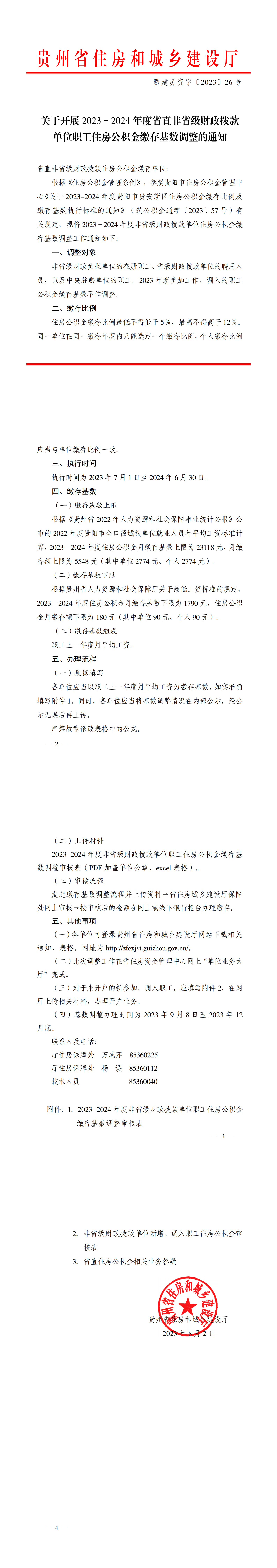 关于开展2023-2024年度省直非省级财政拨款单位职工住房公积金缴存基数调整的通知(黔建房资字〔2023〕26号).pdf