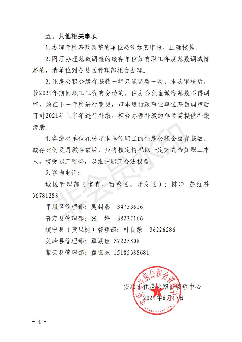 关于开展安顺市2021年度住房公积金缴存基数调整的通知