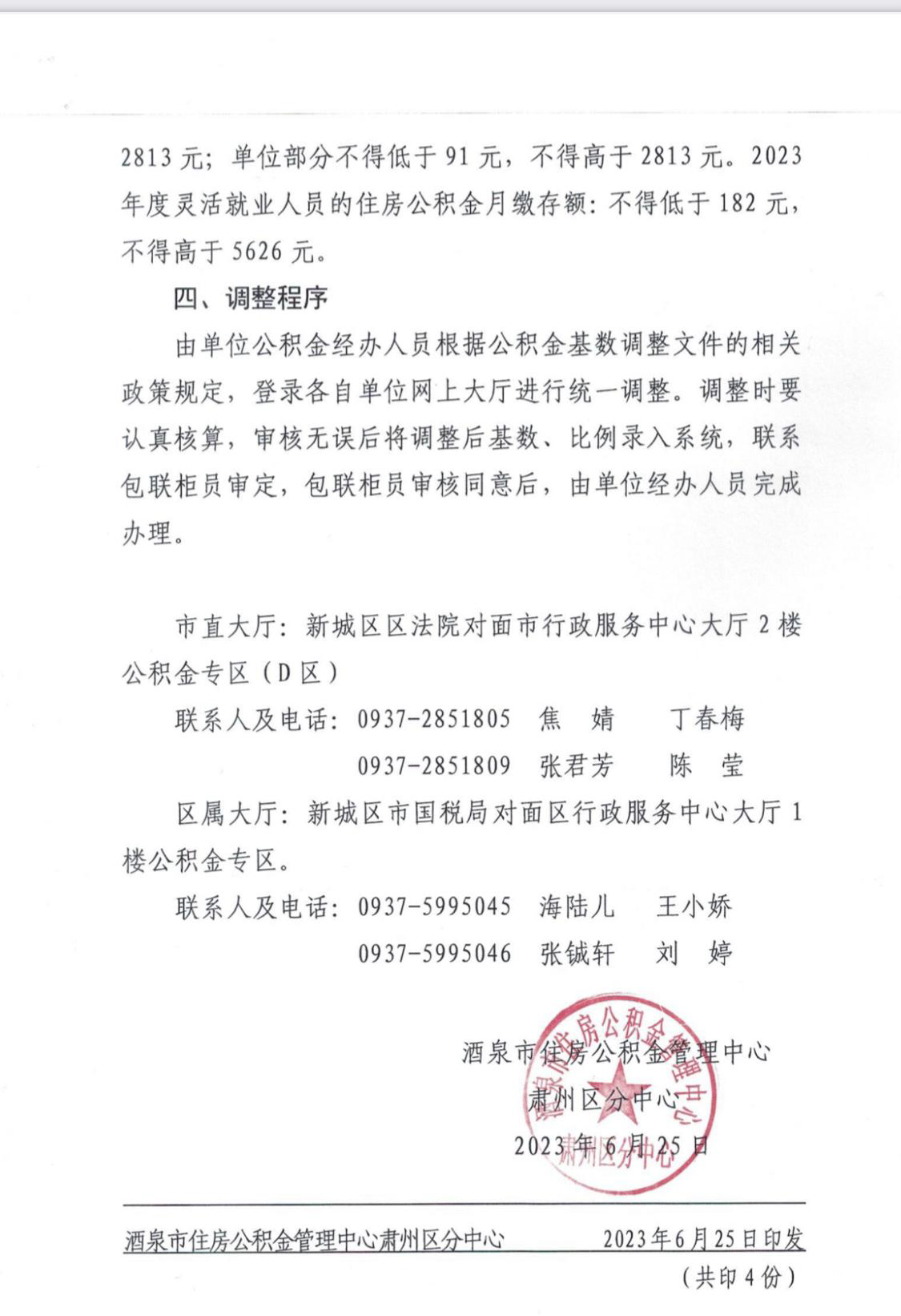 关于认真做好2023年度住房公积金缴存基数调整工作的通知(酒泉)