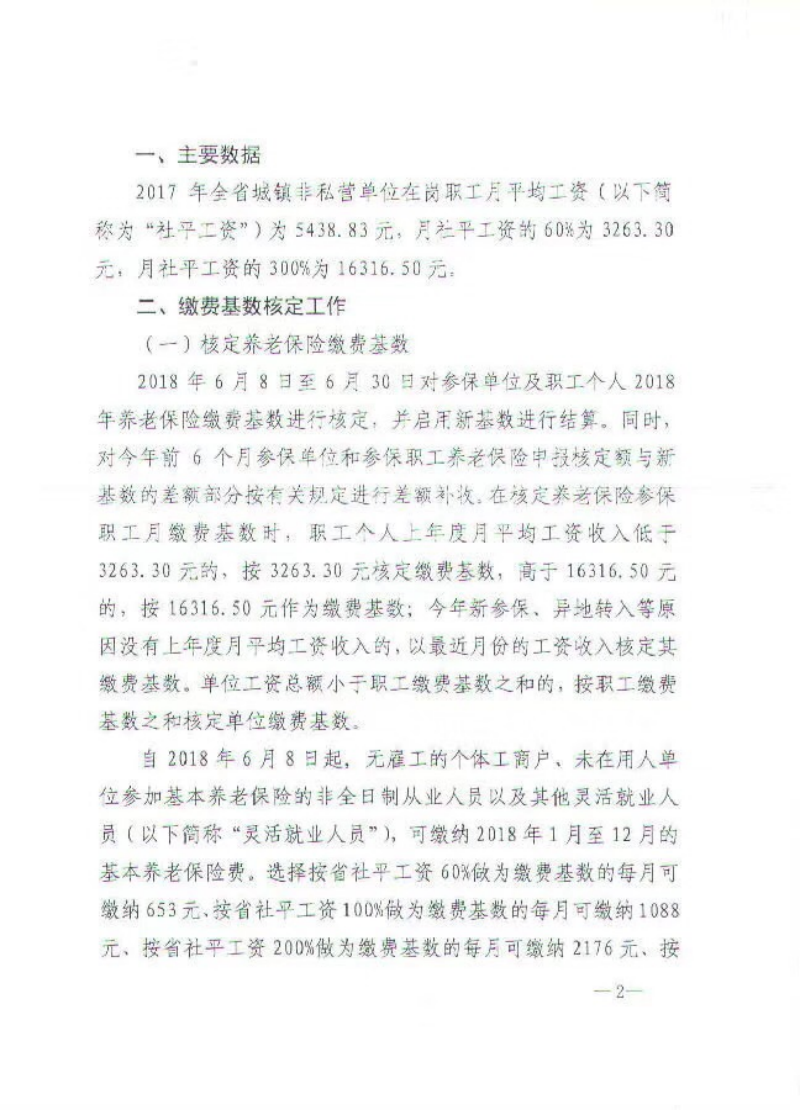 关于调整2018年企业职工基本养老保险和工伤保险缴费基数的通知
