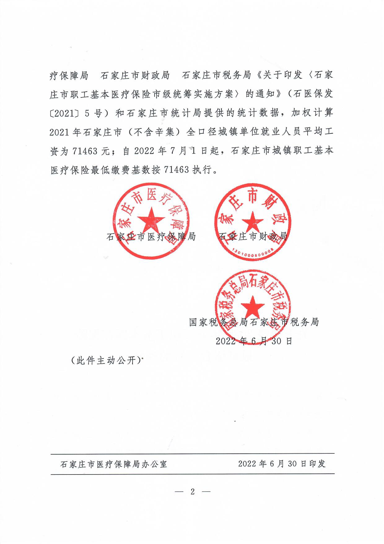 关于调整2022年城镇职工基本医疗保险最低缴费基数的通知(石家庄)