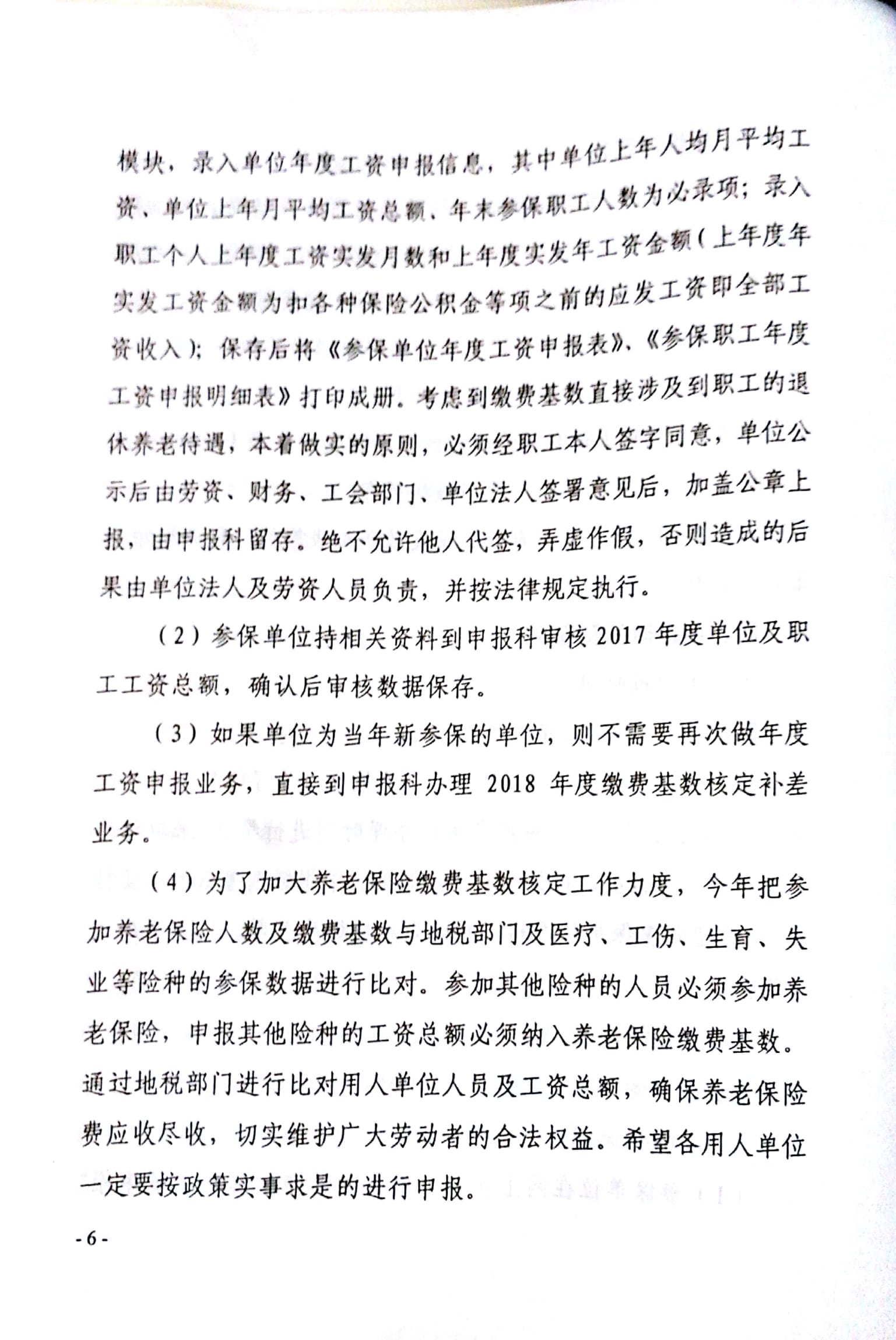 关于核定2018年度养老保险缴费基数和差额补缴的通知