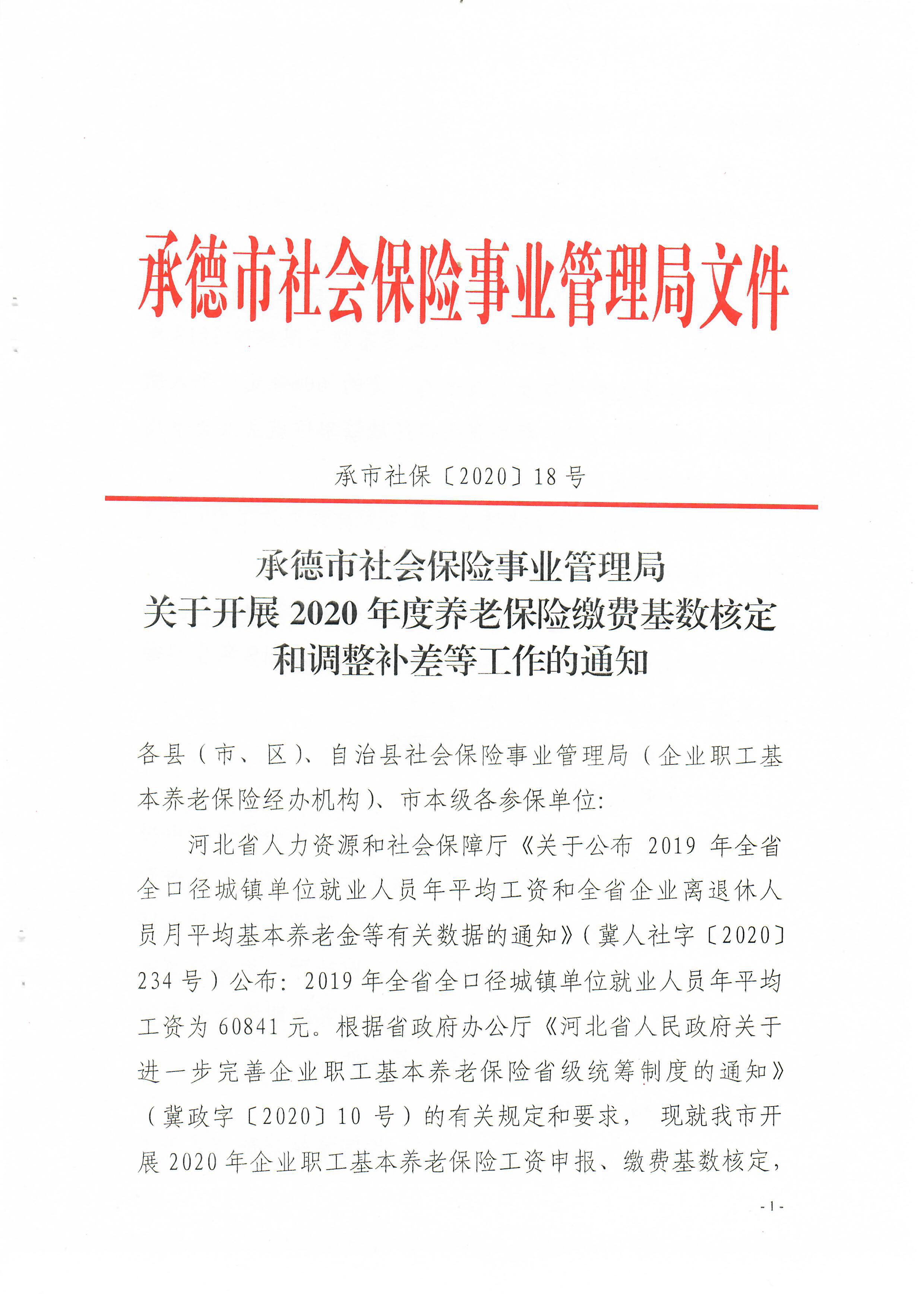 承德市社会保险事业管理局关于开展2020年度养老保险缴费基数核定和调整补差等工作的通知
