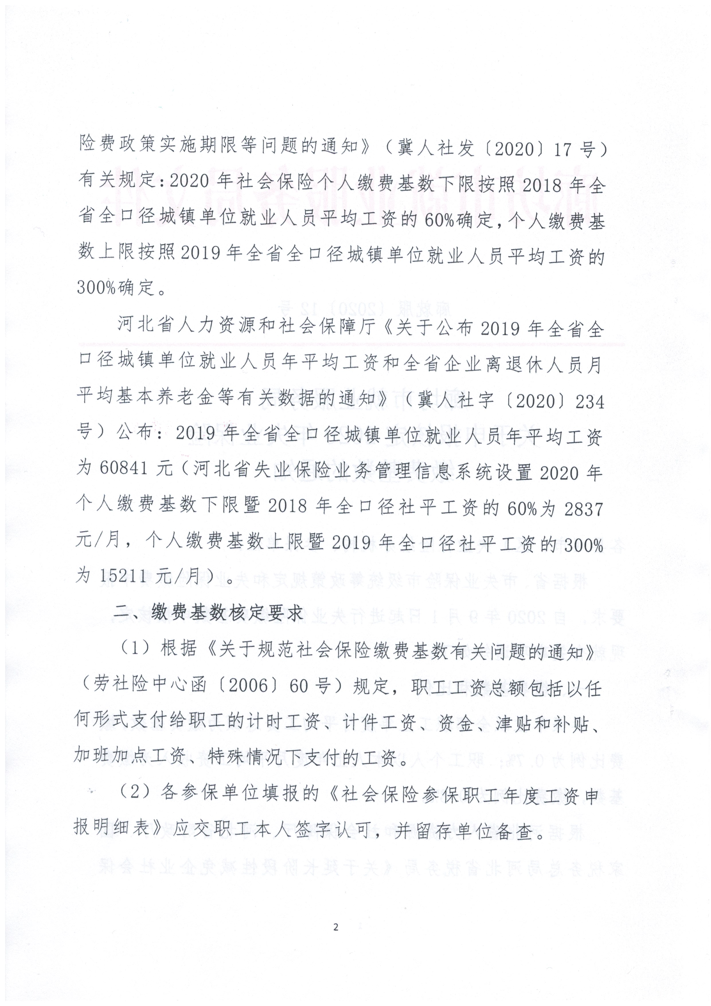 廊坊市就业服务局关于申报核定2020年失业保险缴费基数的通知