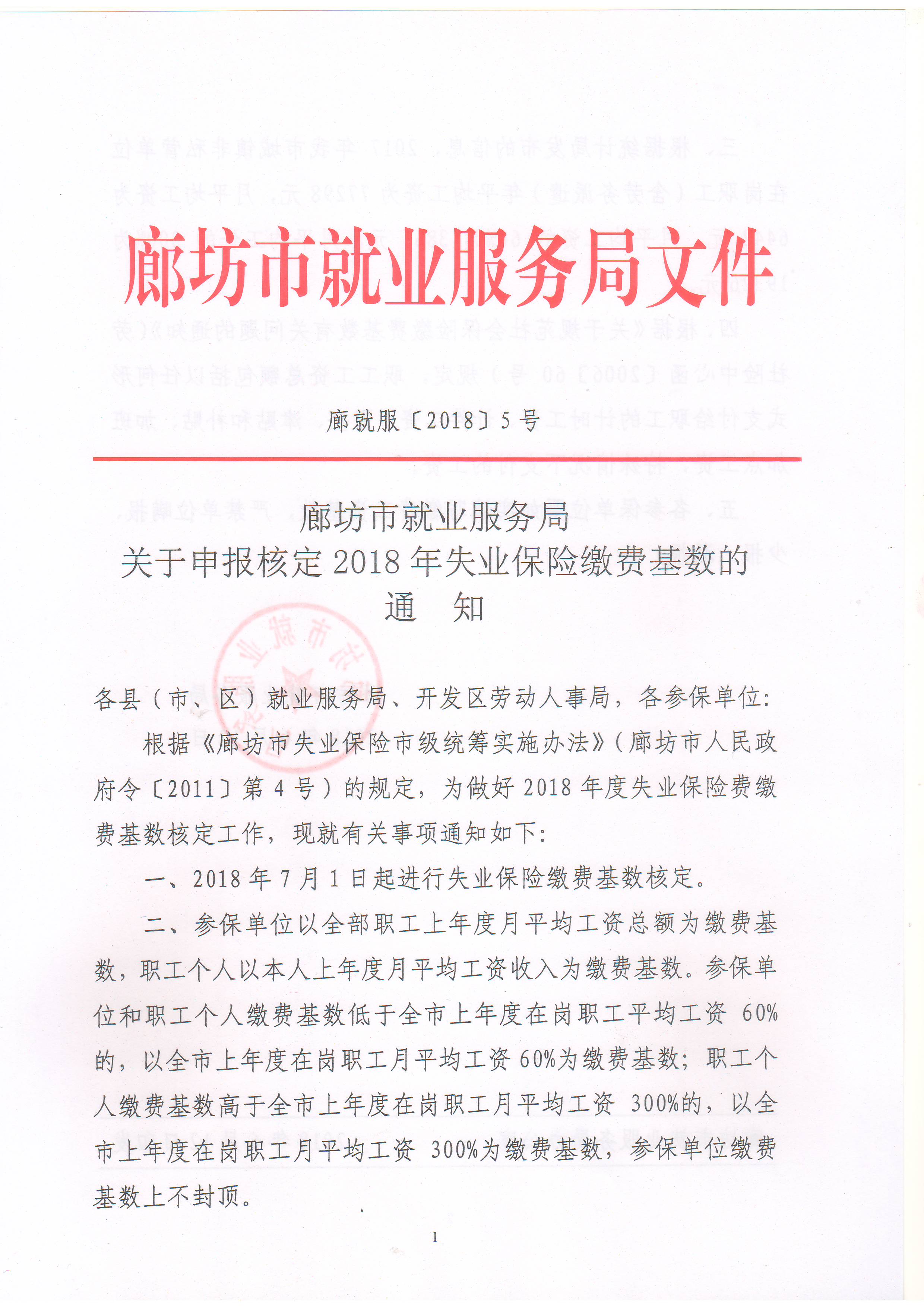 廊坊市就业服务局关于申报核定2018年失业保险缴费基数的通知