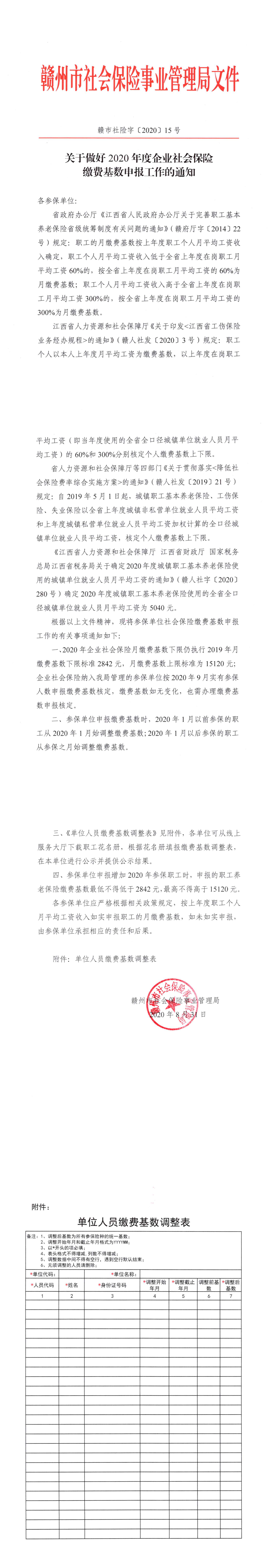关于做好2020年度企业社会保险缴费基数申报工作的通知(赣州)