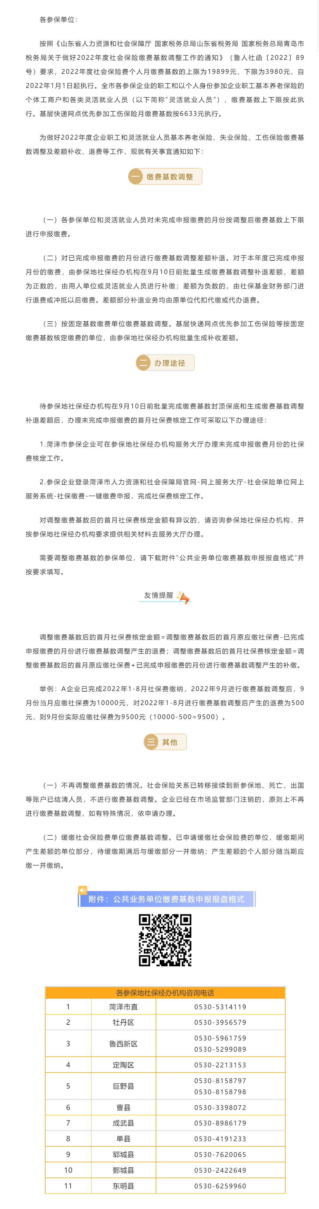 关于做好2022年度社会保险缴费基数调整工作的通知(菏泽)
