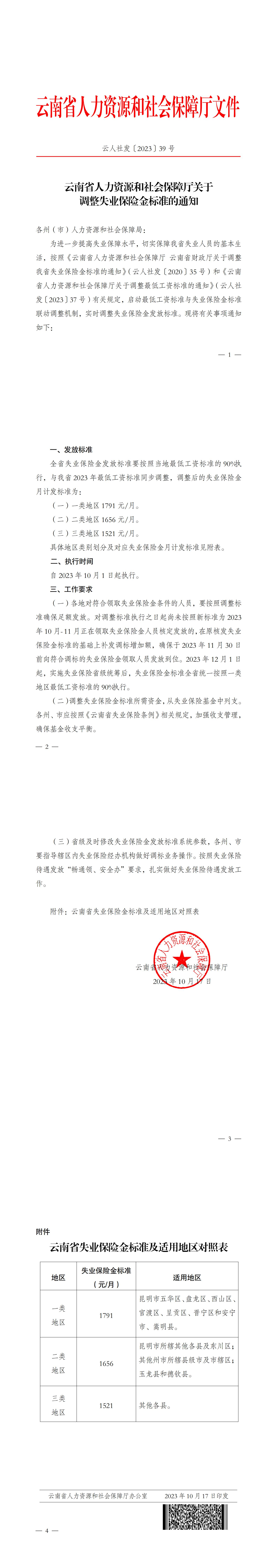 云南省人力资源和社会保障厅关于调整失业保险金标准的通知.pdf