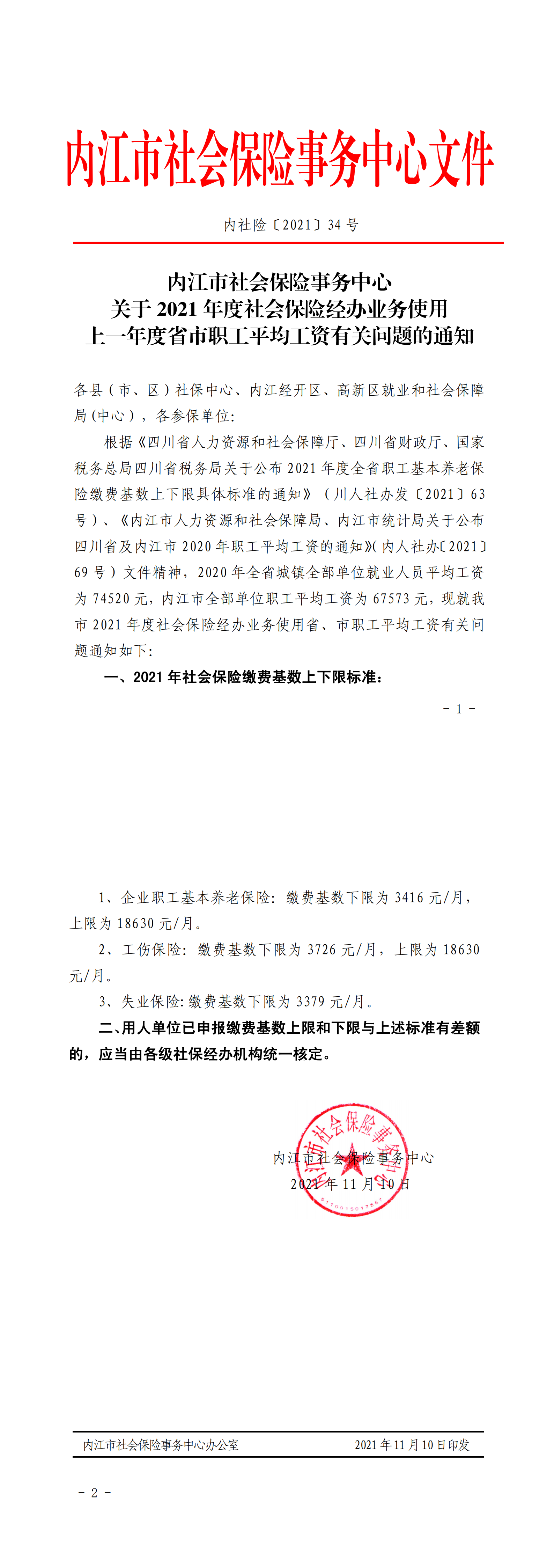 内江市社会保险事务中心 关于2021年度社会保险经办业务使用上一年度省市职工平均工资有关问题的通知