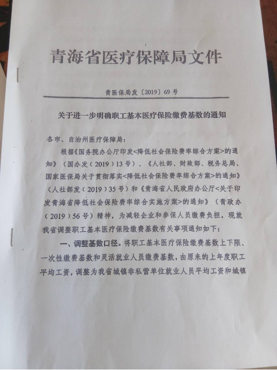 关于进一步明确职工基本医疗保险缴费基数的通知(青海-2019)