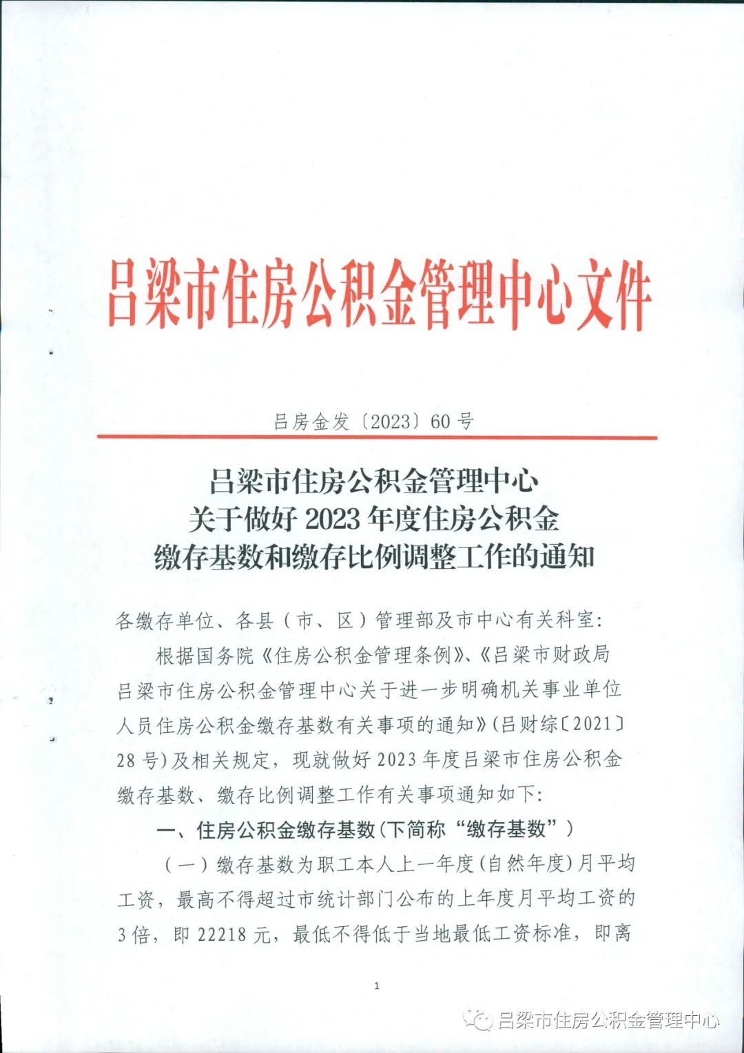 关于做好2023年度住房公积金缴存基数和缴存比例调整工作的通知(吕梁)