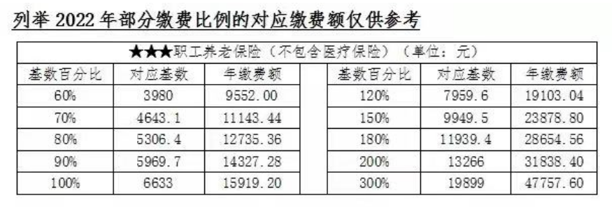 灵活就业人员请通过税务申报缴纳养老保险费。2022年度社会保险费个人月缴费基数的上限为19899元、下限为3980元,自2022年1月1日起执行。