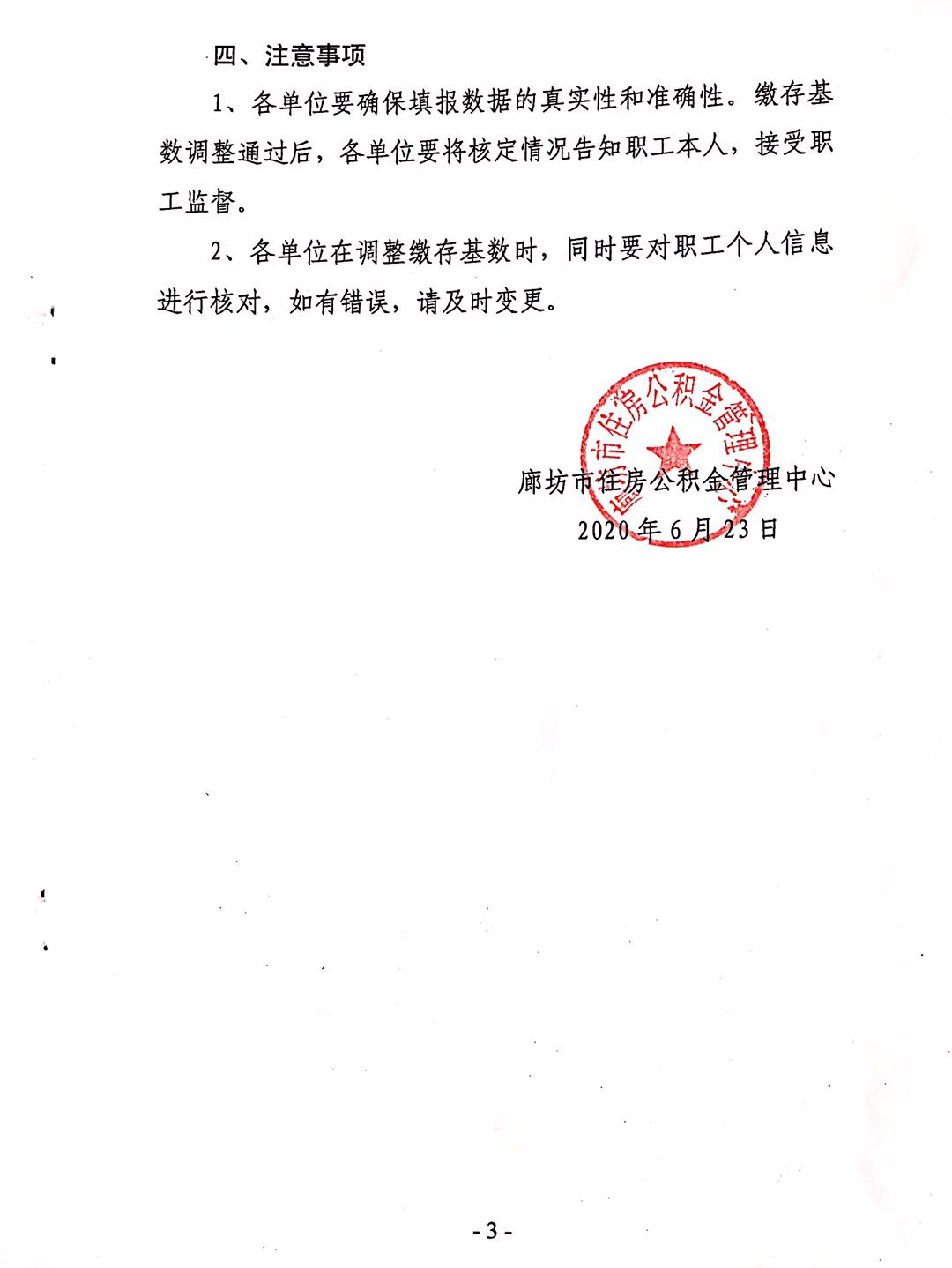 廊坊市住房公积金管理中心关于调整2020年度住房公积金缴存基数的通知