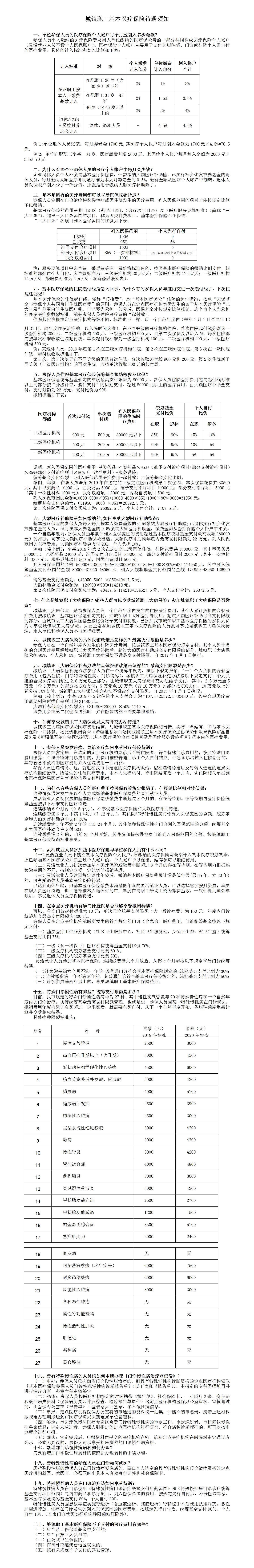 城镇职工基本医疗保险待遇须知