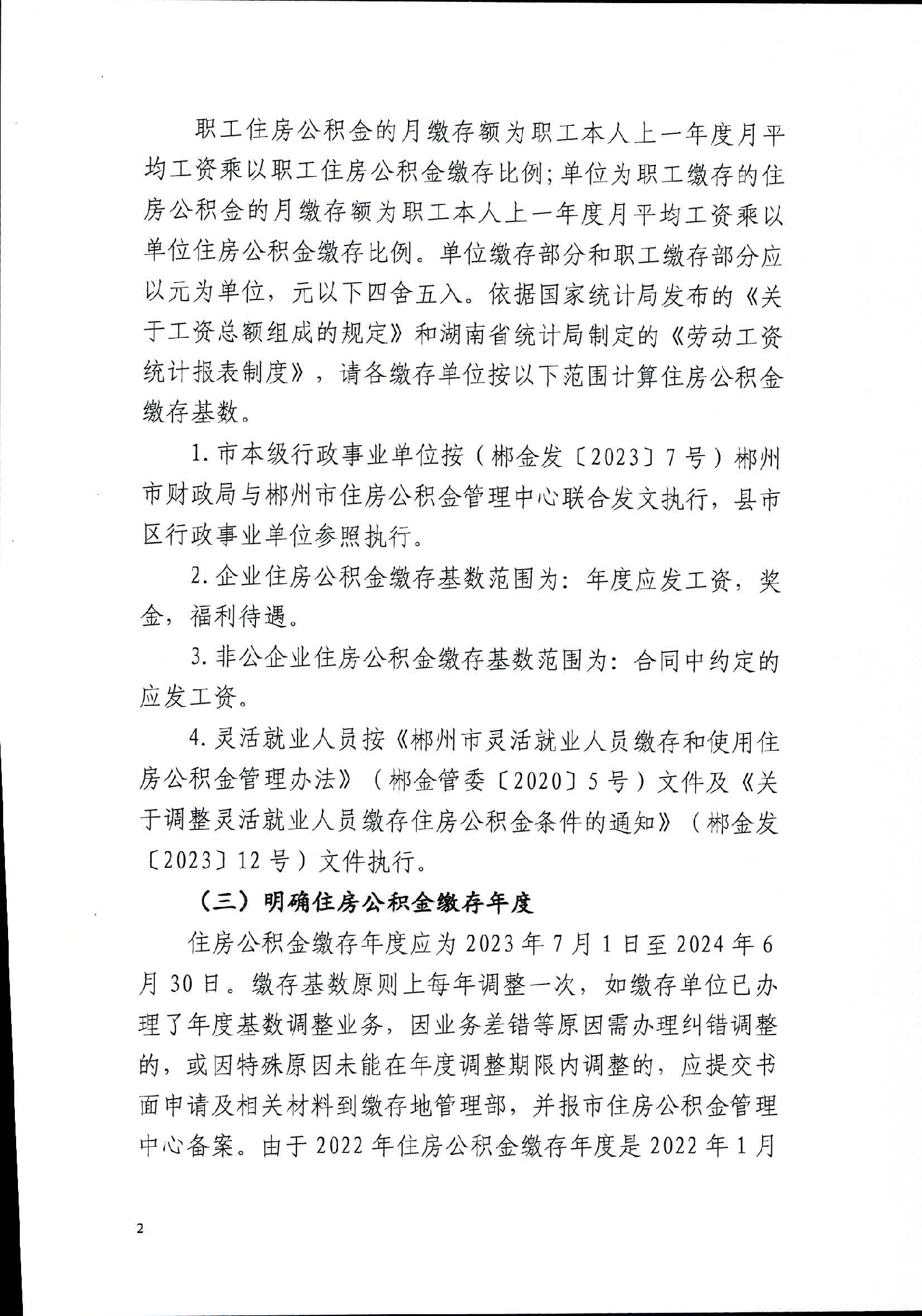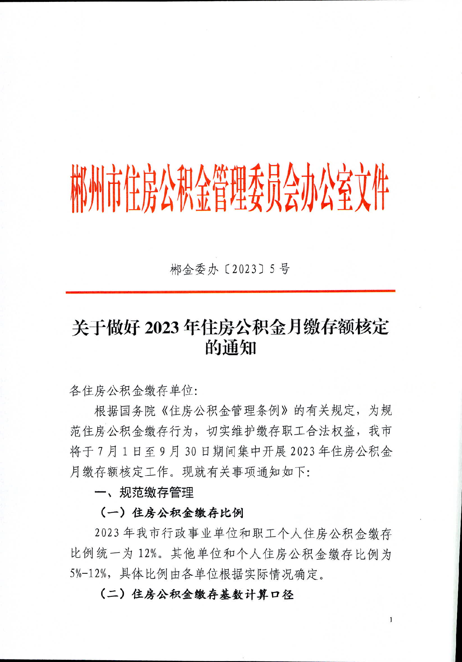 关于做好2023年住房公积金月缴存额核定的通知(郴州)