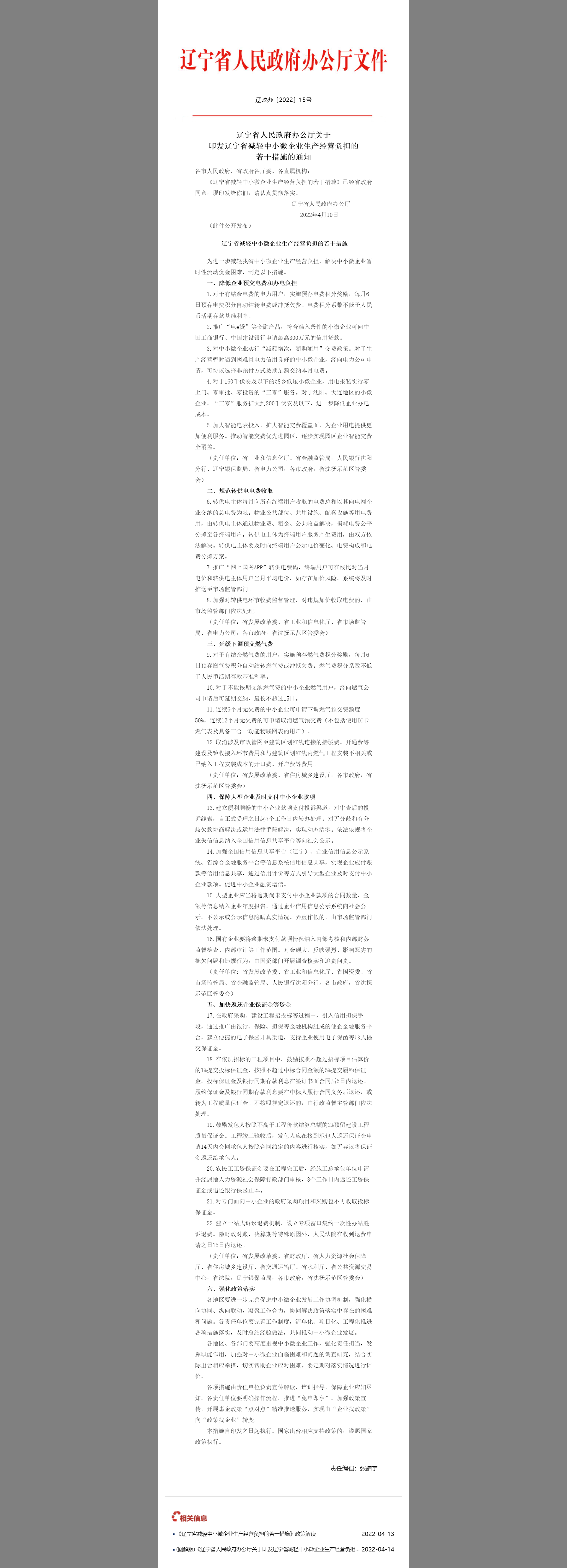 辽政办〔2022〕15号