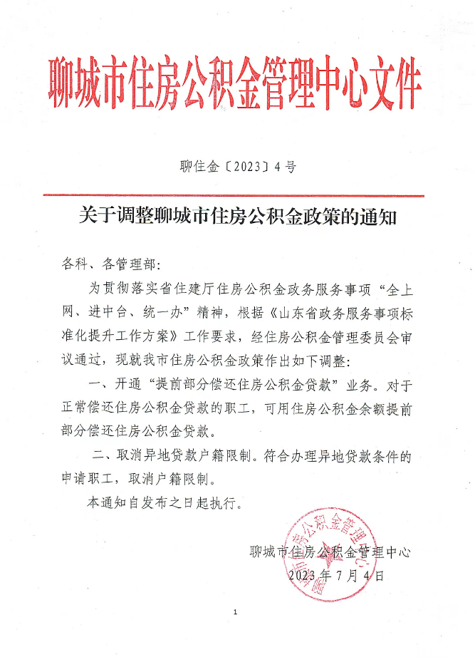 关于调整聊城市住房公积金政策的通知