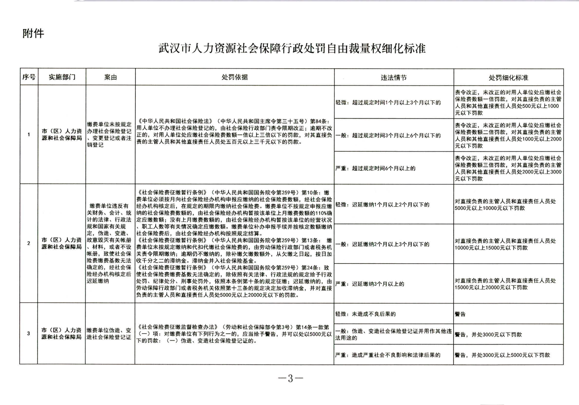 关于印发武汉市人力资源社会保障行政处罚自由裁量权细化标准的通知
