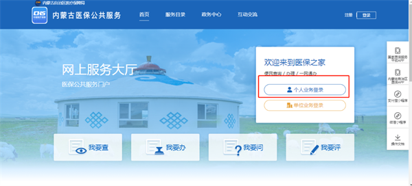 地址:https://ylbzj.nmg.gov.cn/ggfw/hallEnter/#/Index