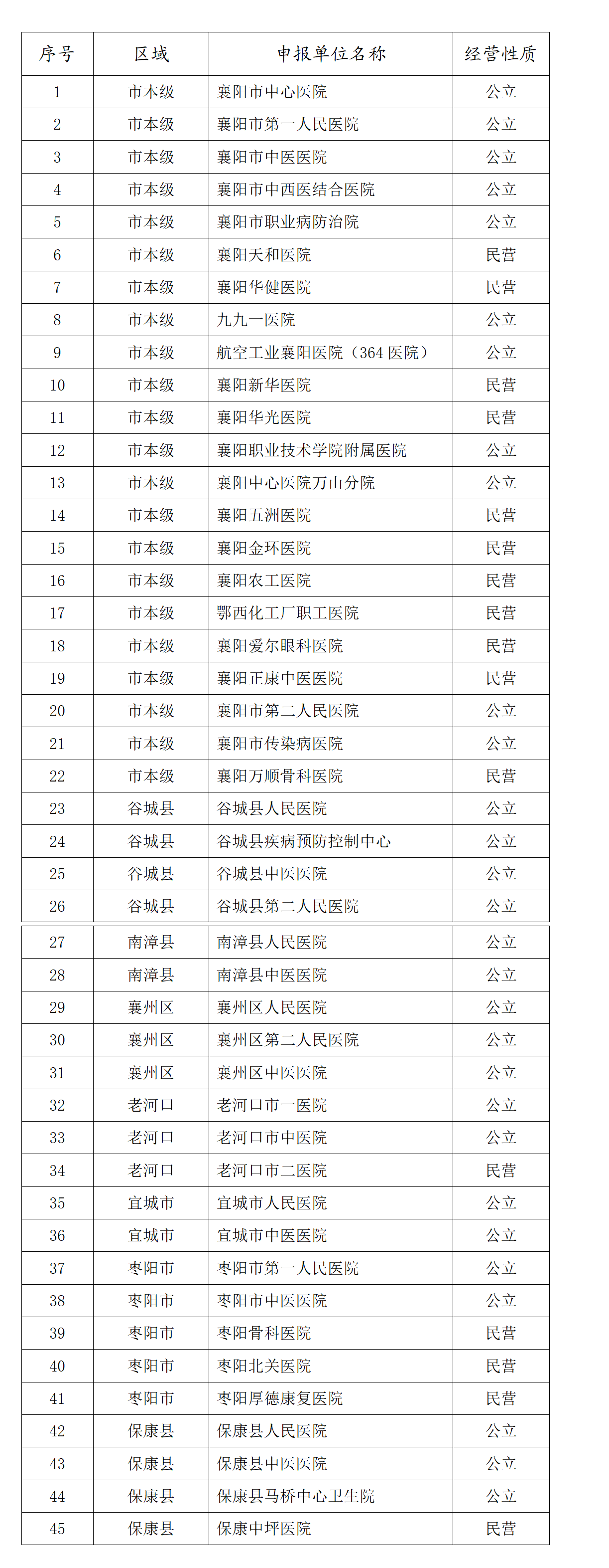 根据《工伤保险条例》《湖北省工伤保险实施办法》等相关政策规定,经单位自愿申请、工伤保险经办机构现场考察、综合评估等流程,现将拟签订2022-2023年度工伤保险服务协议的医疗机构名单予以公示。公示期为5个工作日,自2022年5月26日起至2022年6月1日结束。