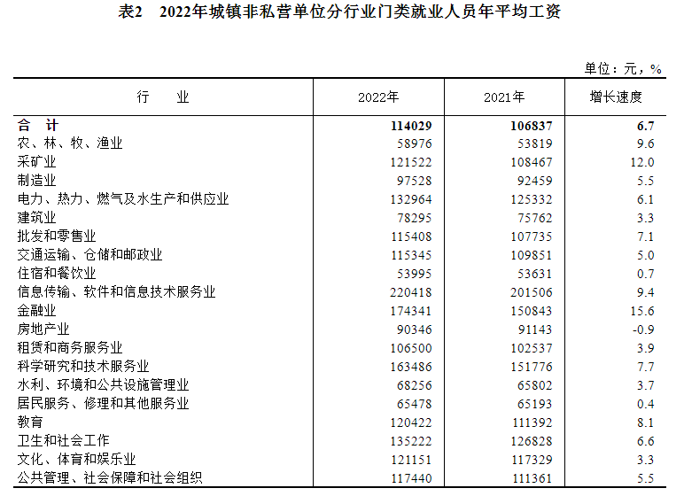 2022年全国城镇非私营单位就业人员年平均工资为114029元,比上年增加7192元,名义增长[1]6.7%。扣除价格因素,2022年全国城镇非私营单位就业人员年平均工资实际增长4.6%。