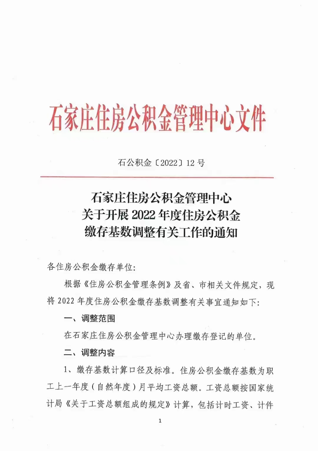 石家庄住房公积金管理中心关于开展2022年度住房公积金缴存基数调整有关工作的通知